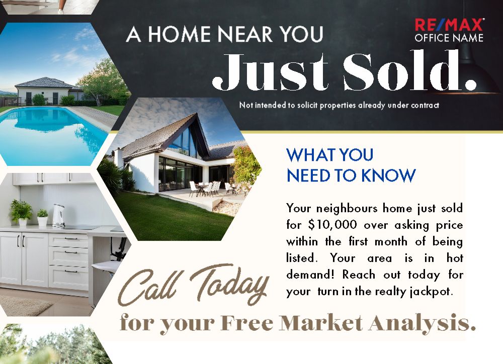 We are very happy with how they turned out and how quick we received delivery of the prints. We just sold our listing so will be using your design template and mailing service to send out a just sold card to the same neighborhood.